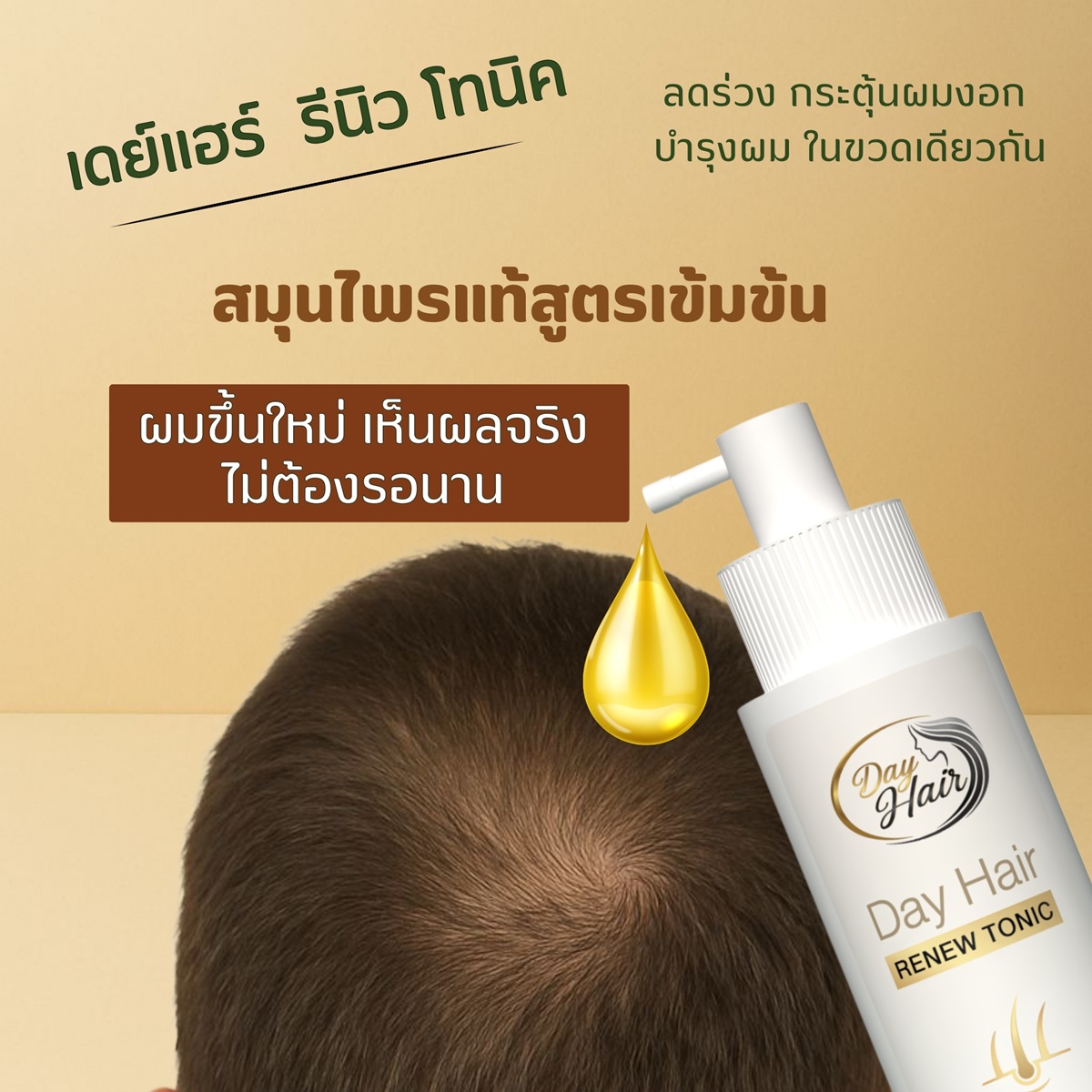 เดย์แฮร์ รีนิว โทนิค RENEW TONIC โทนิคสำหรับศีรษะล้านและผมบาง บำรุงรากผมให้แข็งแรง ลดการหลุดร่วง กระตุ้นการเกิดใหม่ของเส้นผม สมุนไพรแท้ปลอดภัย ไร้สารเคมีรุนแรง เหมาะสำหรับทั้งชายและหญิง